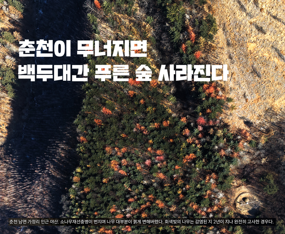 “남산 위에 저 소나무 철갑을 두른 듯 바람 서리 불변함은 우리 기상일세” 사시사철 푸른 소나무는 애국가에 등장할 정도로 대한민국의 역사와 정신을 상징하는 자연물이다. 소나무는 한때 주변에서 가장 보기 쉬운 나무였지만, 기후변화로 나무를 괴롭히는 병해충이 확산하면서 숲의 경관도 달라지고 있다.