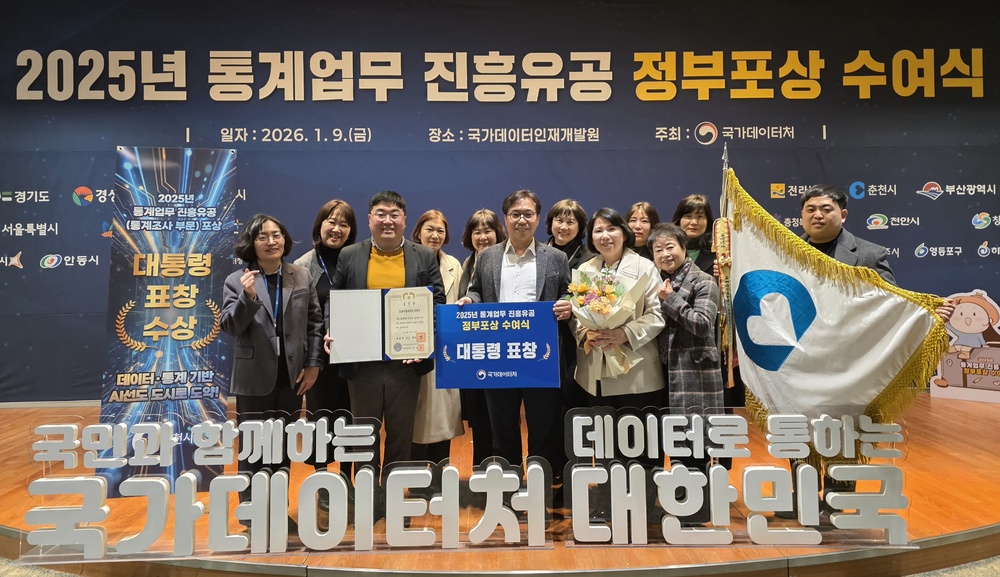 춘천시가 통계 업무 성과를 인정 받아 강원특별자치도 내 시·군 가운데 처음으로 ‘국가 통계 유공’ 대통령 표창을 수상했다. 국가데이터처는 1월 9일, 전국 단위 대규모 통계조사를 성공적으로 수행한 25개 광역·기초지자체를 선정해 대통령 표창과 장관상을 시상했다. 이 가운데 기초자치단체 중 대통령 표창을 받은 곳은 춘천시를 포함해 전국에서 단 2곳뿐이다.