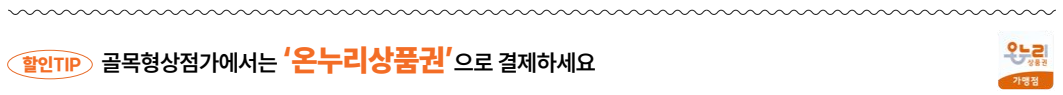 온누리상품권은 중소벤처기업부와 소상공인시장진흥공단이 발행하는 상품권이다. 전통시장과 전통시장법 및 유통산업발전법에 규정된 상점가(명동, 지하상가, 육림고개, 인공폭포, 요선동상점가), 원도심 상권활성화 구역뿐 아니라 골목형상점가에서도 이 상품권으로 결제할 수 있다. 온누리상품권은 10% 할인가로 충전할 수 있는 데다, 최대 보유 한도를 200만원까지 허용한다. 연말 정산 시 전통시장 소득 공제 혜택도 존재한다. 평소 지역 상권 이용이 활발한 소비자라면 실질적인 할인 효과가 크다.