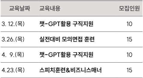 교육일시: 3.16(월) ~ 5.4(월) / 매주 월·수 14:00~17:00