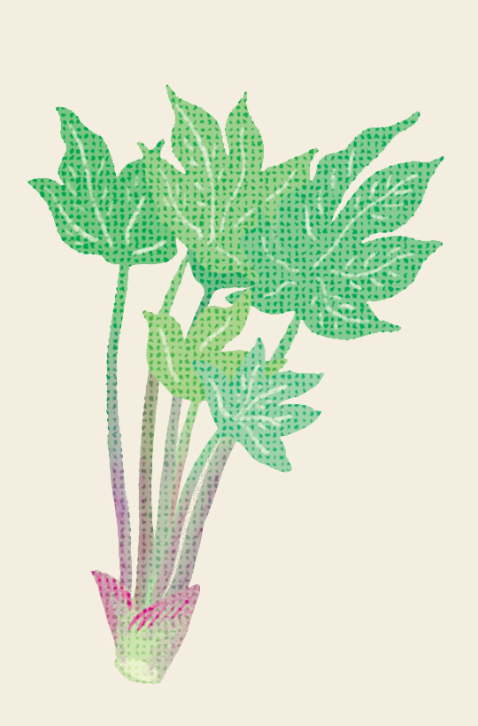 | 짙푸른 잎이 먹물처럼 보여 머구, 머위라 부른다. 봄나물 가운데 가장 먼저 수확한다. 새순에서 올라오는 상쾌한 향과 은근한 쓴맛은 재배 채소에서는 맛보기 어렵다. 어린 잎은 쌈으로, 줄기는 볶음으로 즐긴다. |