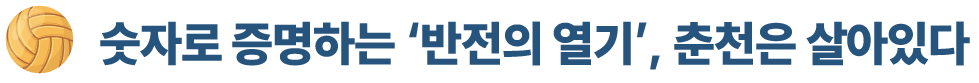 “배구는 9명이 하나가 되어 공을 떨어뜨리지 않는, 끈기와 화합의 스포츠입니다. 춘천 배구의 문은 언제나 활짝 열려 있습니다.” 전경숙 전무이사의 말처럼, 프로팀의 유무가 도시의 스포츠 수준을 결정하는 것은 아니다. 오늘도 퇴근 후 체육관으로 향하는 시민들의 발길이 이어지는 한, 춘천은 그 어느 곳보다 비옥한 ‘배구의 땅’이다.