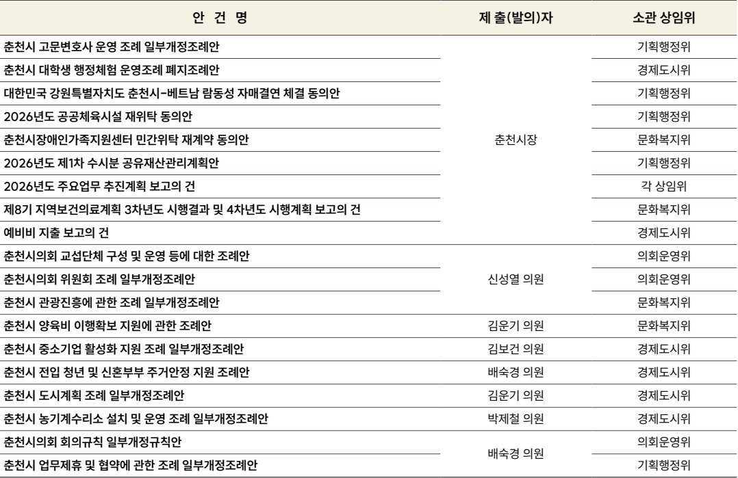 올해 첫 회기인 이번 임시회에서는 시 집행부의 2026년도 주요업무 추진계획을 청취하고 공유재산관리계획안과 각종 조례안을 심의했다.