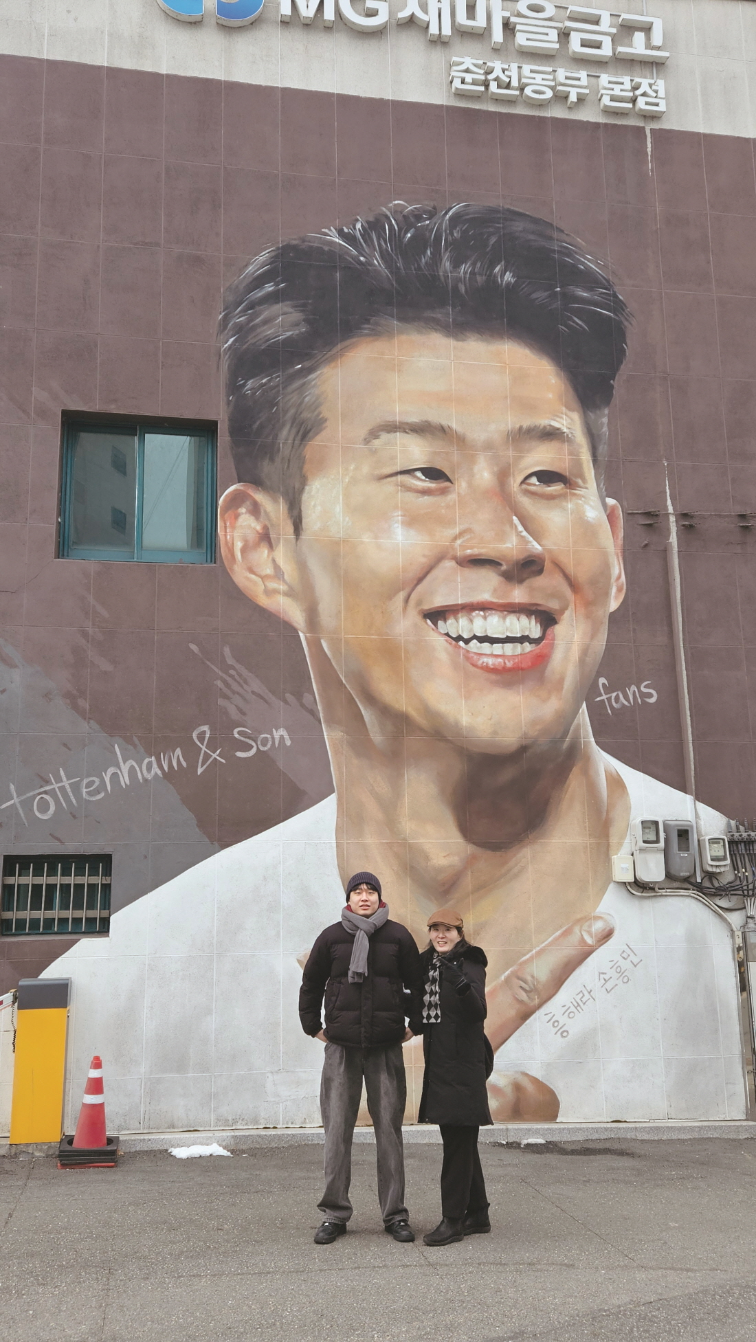골목을 누비며 손흥민 벽화 앞에 서자, 아들의 얼굴이 환해 졌습니다.