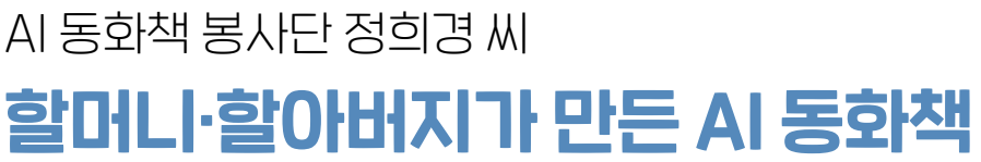 책을 받아 든 아이가 눈을 반짝이며 묻는다. 그 질문에 정희경 (66) 씨는 자신이 만든 동화책을 안겨주며 고개를 끄덕였다. 아이들은 “그럼 그림도 AI가 그렸어요?”, “그럼 금반지는 지금 어디 있어요? 직접 보고 싶어요”라며 질문을 이어갔다. 정 씨는 그 순간을 떠올리며 흐뭇한 미소를 지었다.