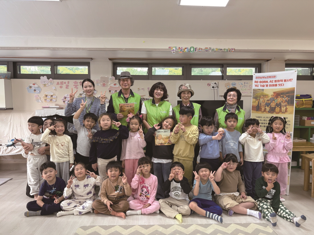 춘천남부노인복지관 AI 동화책 봉사단은 어르신들이 챗GPT 같은 AI 프로그램을 배워 직접 동화책을 만들고, 어린이집을 찾아가 낭독과 책 전달 활동을 하는 봉사단이다. 60대 중반부터 80대 중반까지 복지관 회원 14명이 참여하고 있다. 복지관은 어르신을 변화에 뒤처진 존재가 아니라, AI와 같은 새로운 지식을 주도적으로 배우고 나누는 주체로 바라보자는 취지로 이 봉사단을 기획했다. 2025년 강원특별자치도 노인복지증진 공모사업에 선정돼 지난해부터 운영 중이다.