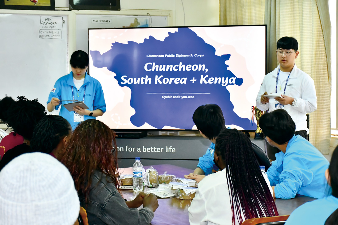 케냐국제학교, 우리나라 KAIST 모델 기반으로 설립된 케냐 과학기술원(Kenya-AIST), 그리고 나이로비 세종학당 학생들을 대상으로 춘천 소개 발표도 진행했다. 발표는 춘천 출신 축구선수 손흥민과 K-POP 그룹 뉴진스 멤버 민지 이야기로 시작해 학생들의 관심을 끌었다. 이어 소양강과 의암호, 레고랜드와 마임축제, 그리고 닭갈비와 막국수까지 소개하며 춘천이 자연과 문화, 음식이 어우러진 도시라는 점을 소개했다.