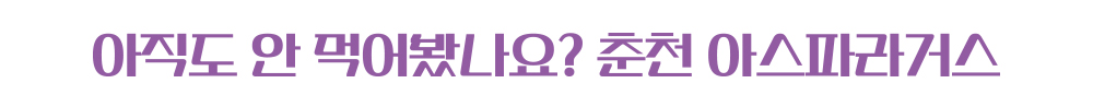 아스파라거스는 "채소의 왕"으로 불린다. 유럽에선 2000년 전부터 약으로 썼다. 아미노산 중 하나인 아스파라간산 함량이 높아 특유의 시원한 맛이 난다. 숙취 해소에 좋으며 이뇨작용으로 요산 배출을 촉진한다. 대륙의 동쪽 끝으로 건너온 채소는 이제 춘천을 대표하는 농산물로 자리 잡았다.