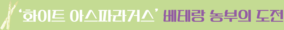 최근 일부 농가에선 신규 해외 시장을 개척하기 위해 새로운 도전에 나섰다. 기존 시장의 대부분을 차지했던 그린 아스파라거스와 다른 '화이트 아스파라거스' 재배를 시작했다. 햇빛을 차단한 상태로 조심스럽게 길러 맛이 부드럽고 향이 좋다. 봄철 전국적으로 그린 아스파라거스 물량이 쏟아지는 시기에, 화이트 아스파라거스로 차별화하려는 시도다. 일본 등 해외 시장에서는 화이트가 그린에 비해 3~4배 높은 가격에 거래될 정도로 귀한 취급을 받는다.
