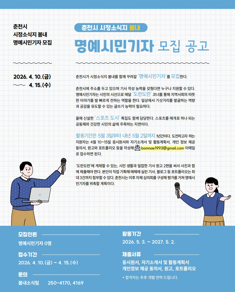 2026년 춘천시 시정소식지 봄내 명예시민기자 모집