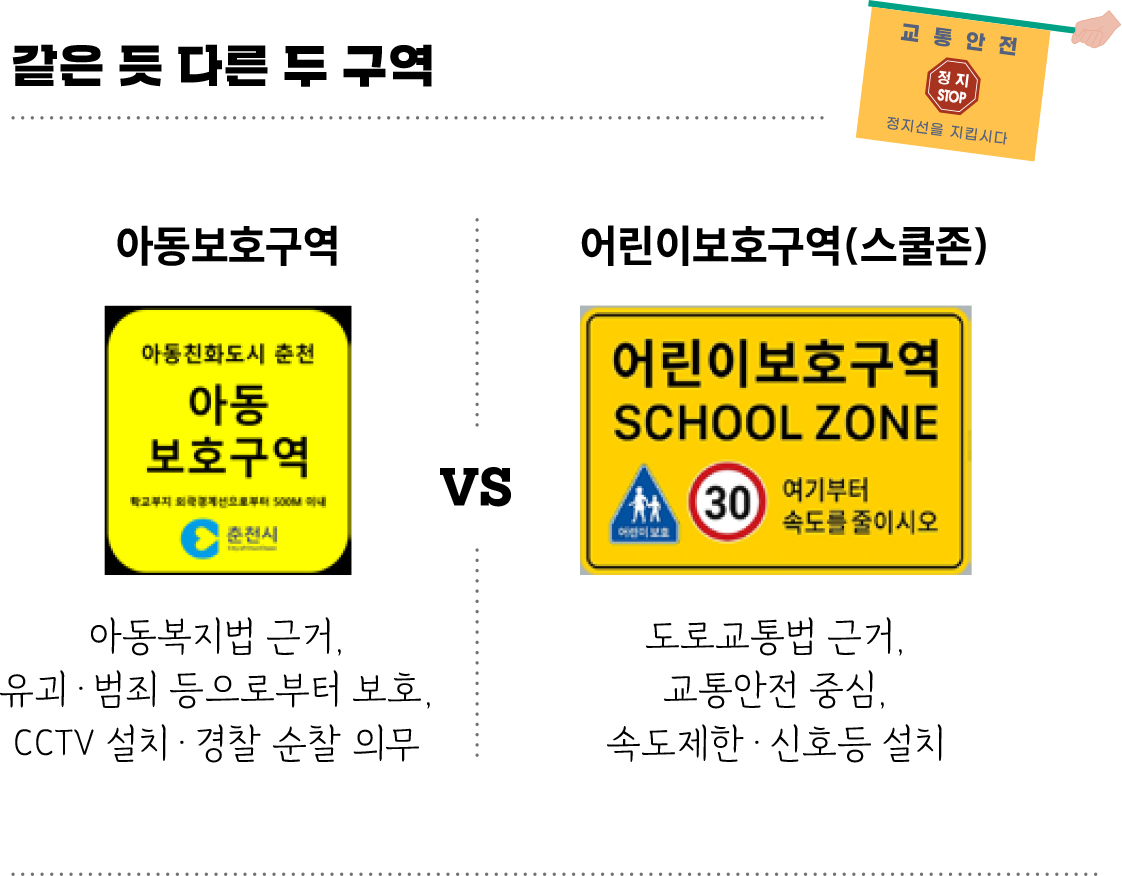 장학초는 2014년 10월, 춘천시 최초의 아동보호구역으로 지정 됐다. 아동보호구역은 아동복지법에 근거한다. 교통안전이 목적인 어린이보호구역(스쿨존)과 달리, 유괴·범죄 등 모든 위험으로부터 아이를 보호하기 위한 제도다. 지정되면 학교 외곽 반경 500m 안에 방범용 CCTV를 설치해야 하고, 시 통합관제센터와 경찰서, 학교별 안전지도 인력이 협력해 모니터링과 순찰을 맡는다.