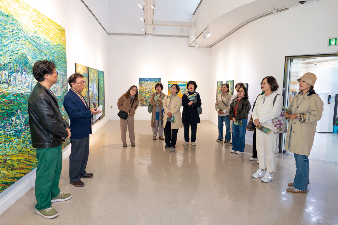 춘천미술관을 찾은 춘천인생학교 수강생들은 작가와의 대화를 통해 동시대적 고민에 공감하고, 서양화의 표현 기법을 익히는 시간을 가졌다