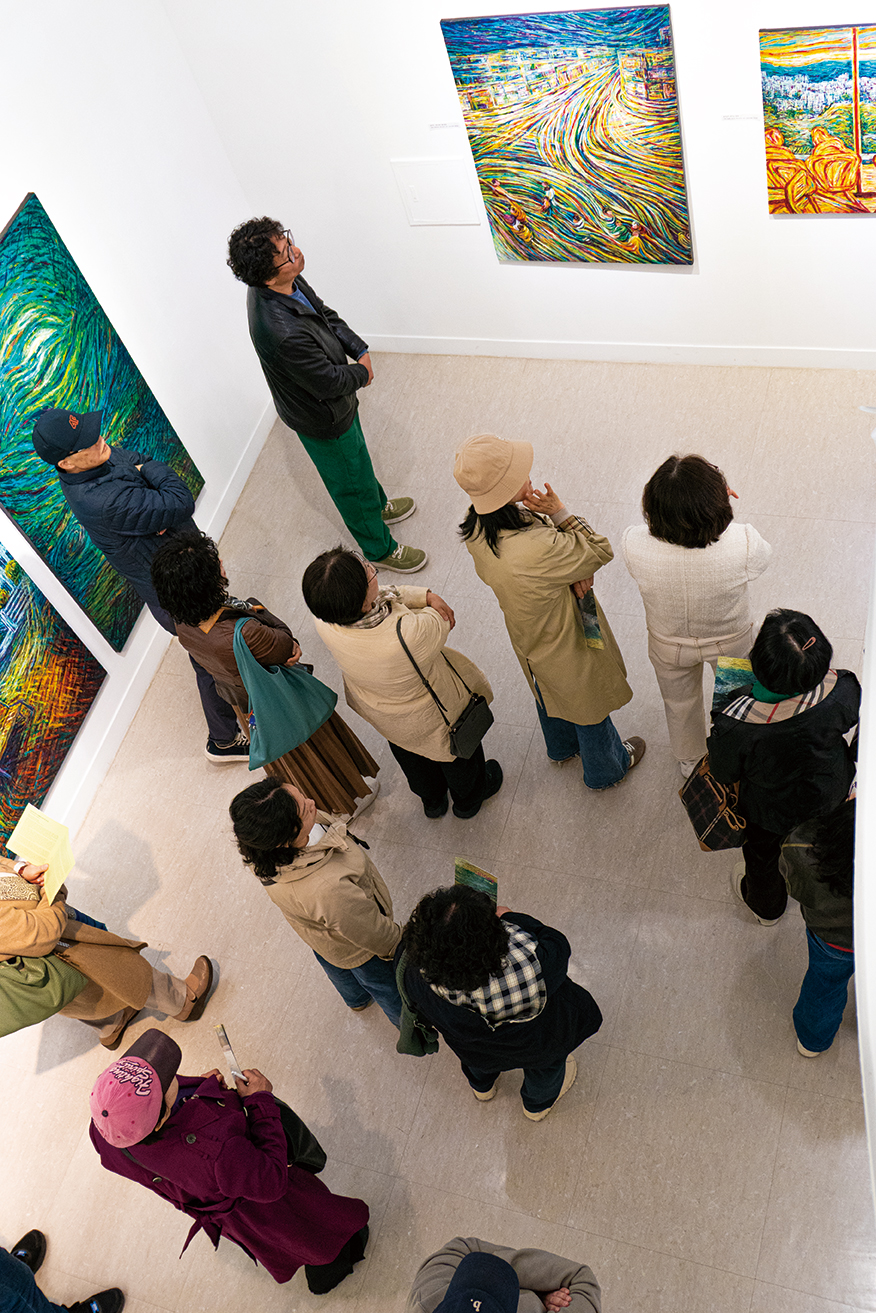 3월 31일 오후 2시 춘천미술관. 한영호 강원대 미술학과 명예교수가 진행하는 수업이 한창이었다. 지역 예술을 통해 서양미술 기법을 피부로 느끼는 시간. 수강생 20명은 이민혁 개인전 ‘봄날, 봄내’를 둘러보며 독특한 화풍을 체험했다.