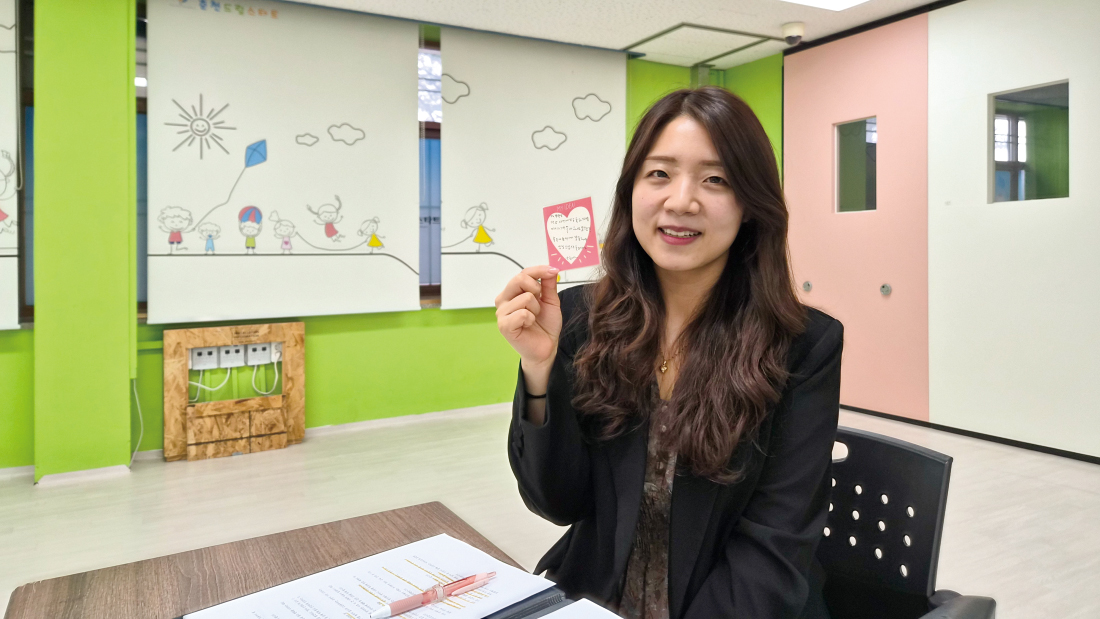 이수민 아동통합사례관리사가 드림스타트 지원 아동이 전한 감사 편지를 소개하고 있다.