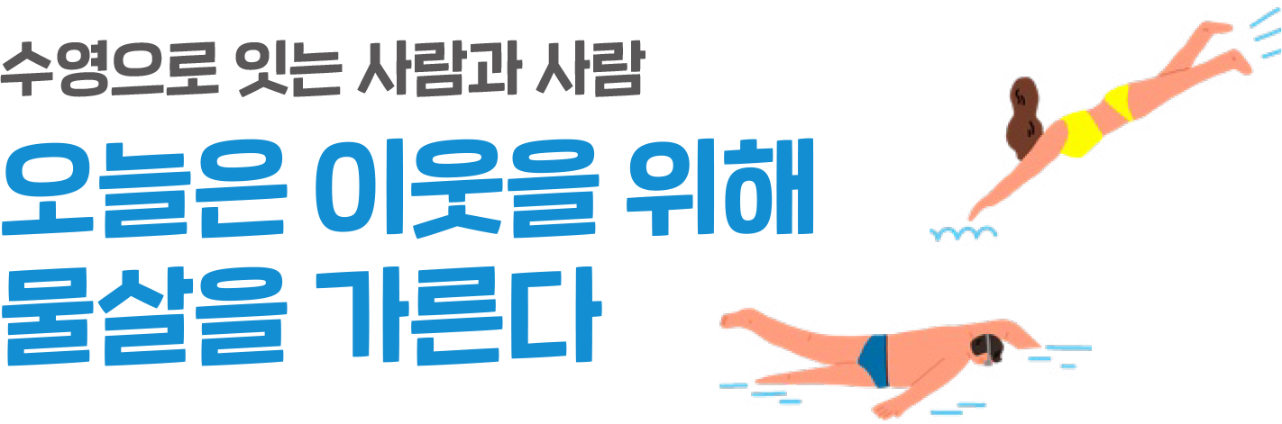 수영은 언뜻 혼자 하는 운동처럼 보이지만, 실제 수영장에선 자연스러운 인간관계의 연속을 마주한다. 재활을 위해 시작한 사람, 성인이 되어 처음 수영을 배운 사람 등 수영장을 찾은 동기도 다양하다. 강습과 연습을 거치며 자신감을 얻고 같은 시간대에 만나는 사람들과 인연을 쌓아간다.
